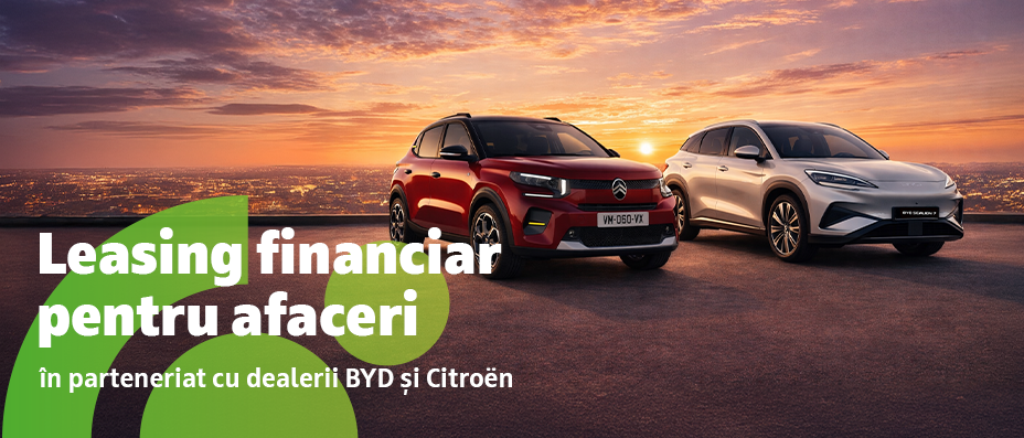 Afacerile prospere investesc în tehnologii care oferă valoare, inovație și performanță, iar OTP Bank devine sprijinul necesar prin soluții de finanțare avantajoase în leasing. OTP Bank a creat parteneriate strategice cu dealerii oficiali BYD și Citroën, oferindu-ți acces la modele auto de ultimă generație, concepute pentru confort și eficiență maximă.