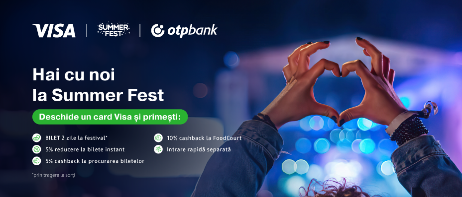 Mai mult, cu OTP Bank și Visa poți câștiga un bilet pentru 2 zile la festival în valoare de 650 lei.