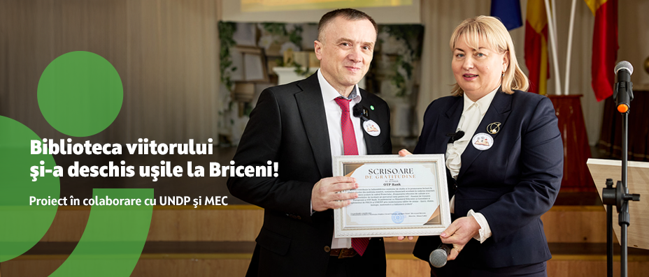 OTP Bank Moldova, în parteneriat cu Programul Națiunilor Unite pentru Dezvoltare (PNUD), UNICEF și Ministerul Educației și Cercetării, a participat la inaugurarea bibliotecii modernizate a Liceului Teoretic „Grigore Vieru" din Briceni.
