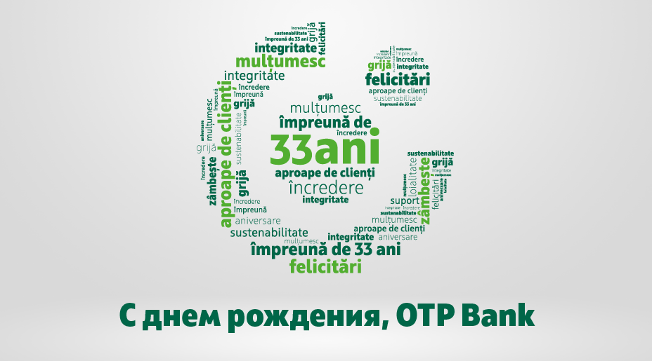 Astăzi OTP Bank celebrează 33 de ani de la înființarea băncii, alături de clienți, parteneri și angajați.